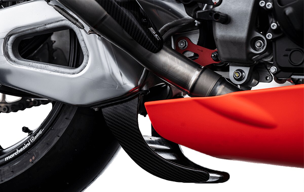 Divieto di uso su suolo pubblico: Questa moto e i suoi componenti sono stati progettati per il solo utilizzo in competizioni motociclistiche in circuito chiuso, di conseguenza non saranno forniti i documenti di conformità necessari alla registrazione del mezzo e se ne vieta l’utilizzo su suolo pubblico.